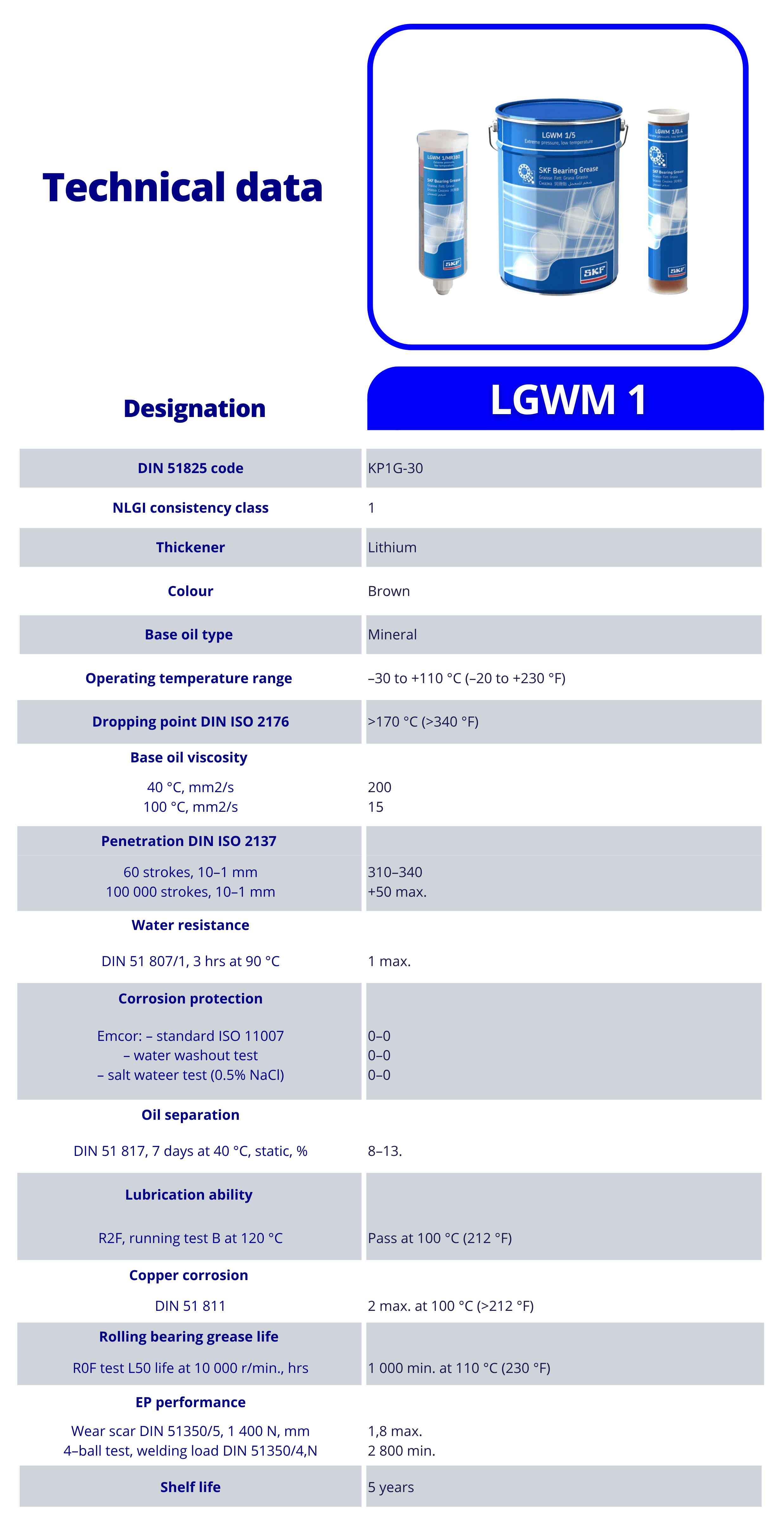 SKF LGWM 1 เป็น จาระบีชนิดน้ำมันแร่ ความข้นต่ำ ใช้สบู่ลิเธียมและสารเติมแต่งสำหรับ รับแรงกดสูง เหมาะสำหรับตลับลูกปืนที่ทำงานภายใต้แรงกดทั้งแนวรัศมีและแนวแกน